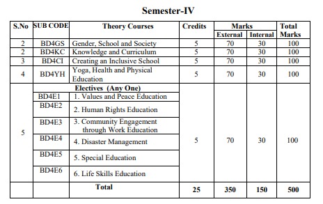 The B.Ed. programme shall be for duration of two academic years consisting of four semesters. Each semester is spread over for a period of 100 working days (36 hours in a week spreading over for 5 or 6 working days in a week, excluding the period of examination and admission.