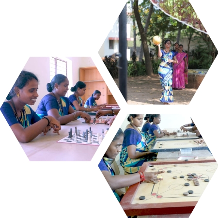 The student-teachers use the recreational facilities like carom, and chess during lunch break.
